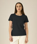 100% Organic cotton combed ringspun. Iconic mid-light women’s t-shirt. Fitted. Set-in sleeve. 1x1 rib at neck collar. Inside back neck tape in self-fabric. Narrow twin-needle topstitch at sleeve cuff and hem.